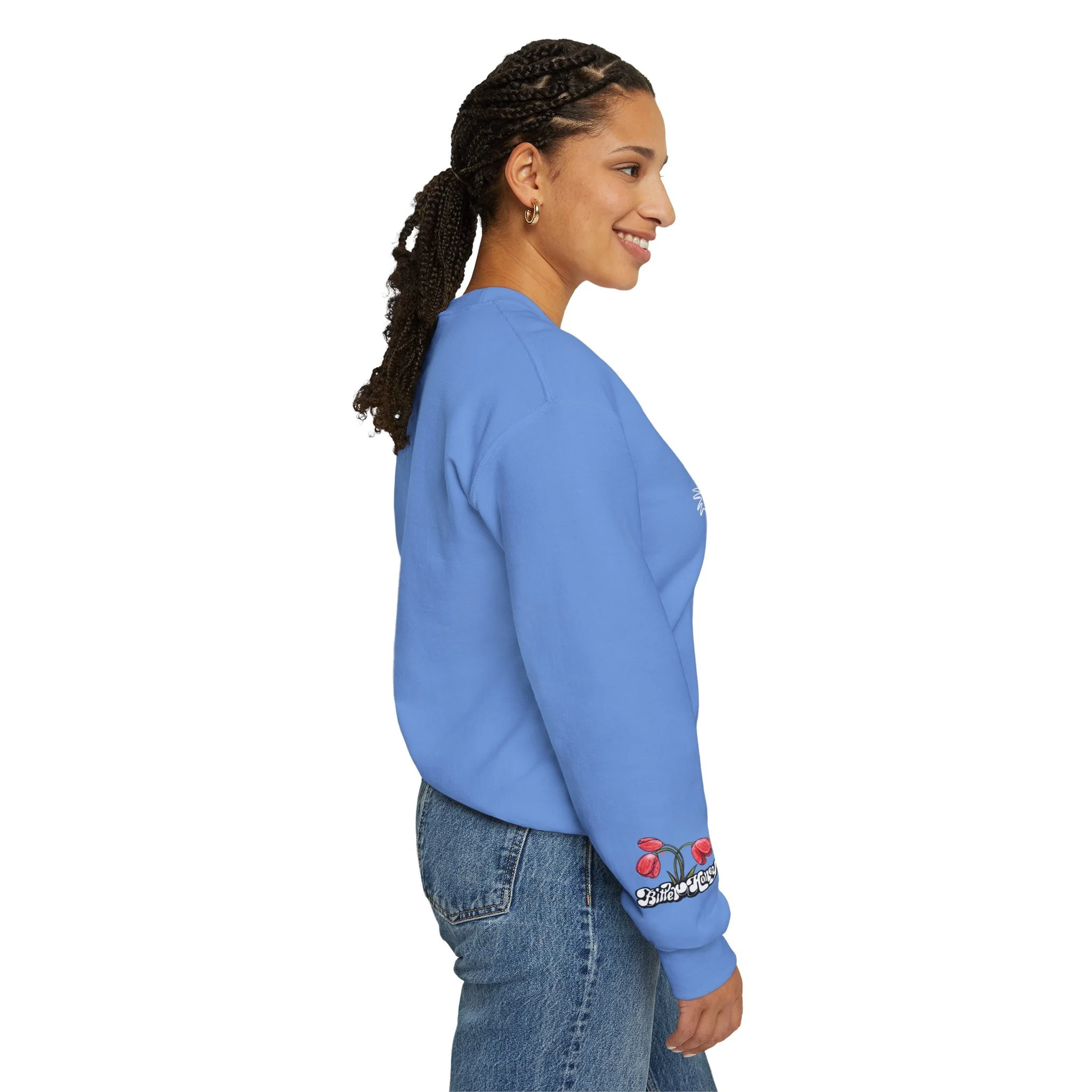 Luxurious comfort and style are what this unisex, sweatskie is ALL ABOUTTT. It's also about tiptoeing gingerly through a tulip patch with Tiny Tim. It's made with 80% ring-spun cotton and 20% polyester and the fabric is 3-end garment-dyed, ring-spun, color-blast fleece with a 100% cotton face. Mmm-mmm-mmm. Each sweatshirt comes with a relaxed fit, a rolled-forward shoulder, and a back neck patch, to boot.